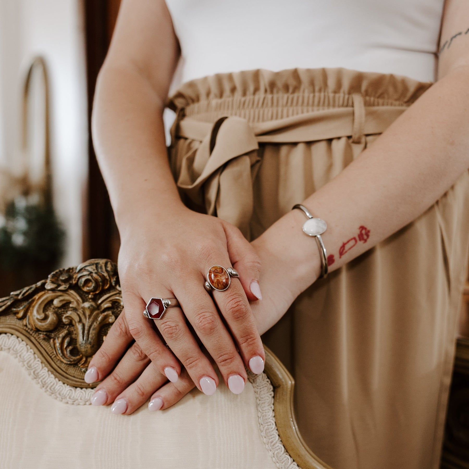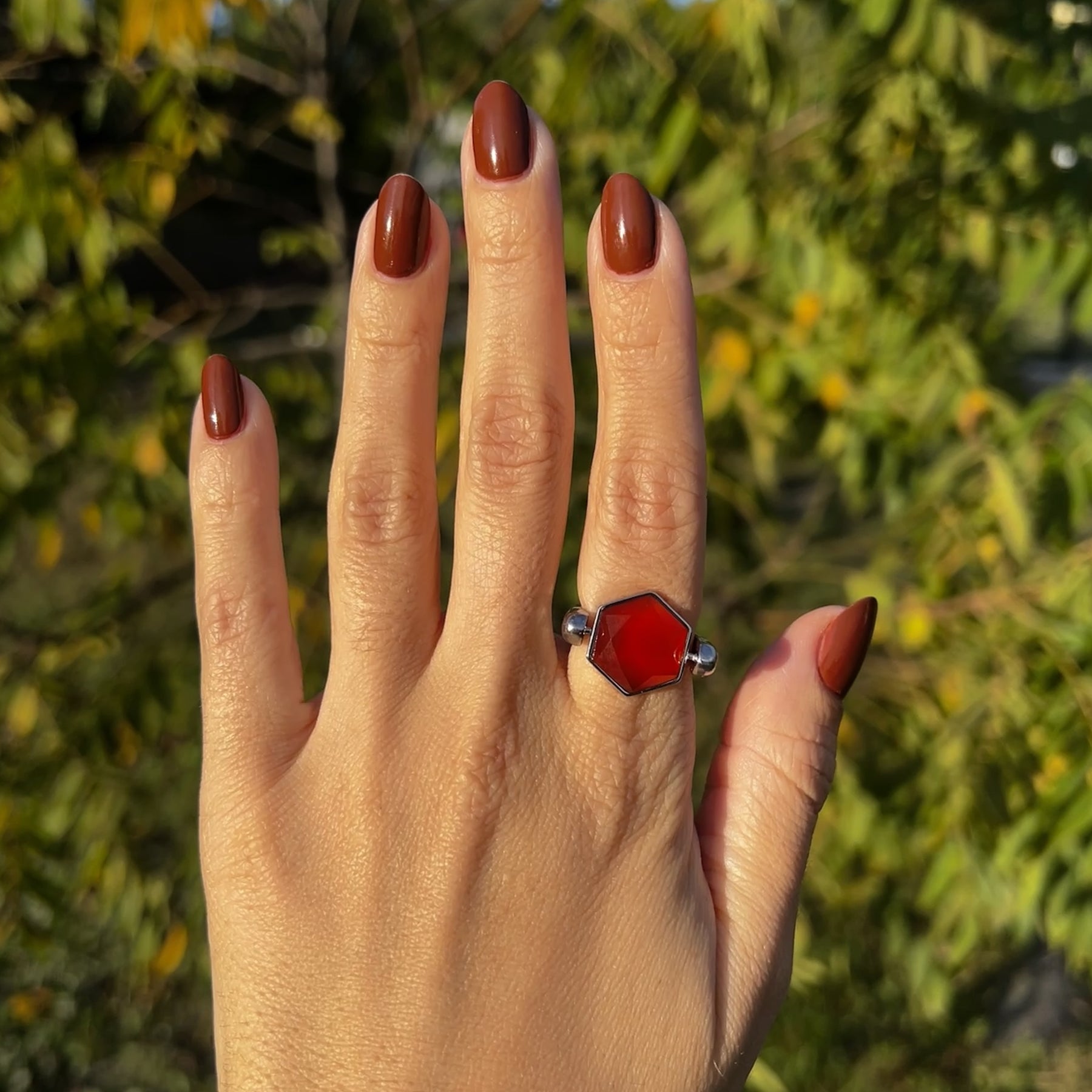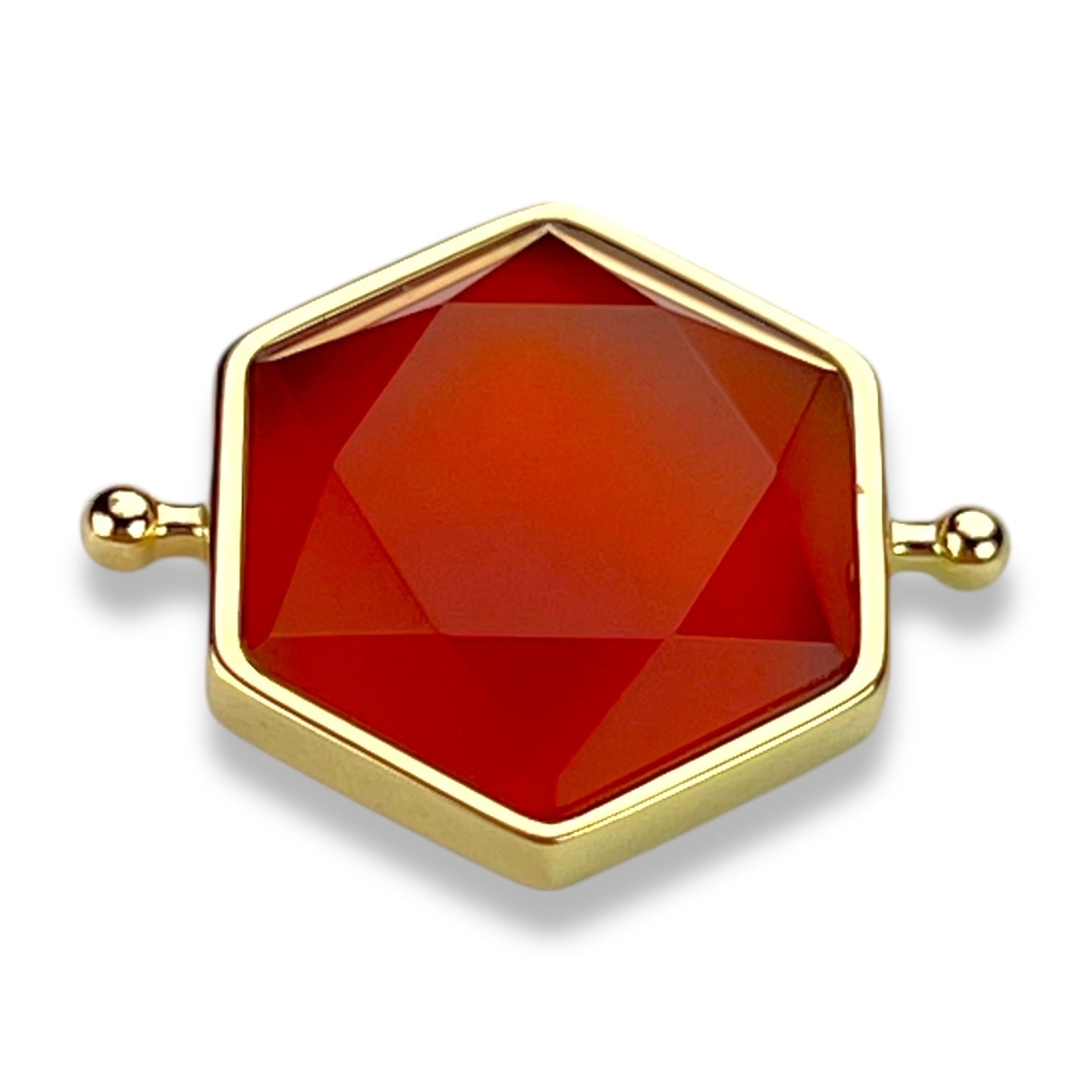 This star-cut hexagon element features natural Carnelian, precision-cut into a bold geometric form. The faceted star design intensifies Carnelian’s rich, fiery tones, creating a powerful glow that feels alive with movement and strength. This confident, energizing piece channels legendary power while bringing momentum and warmth to any look.