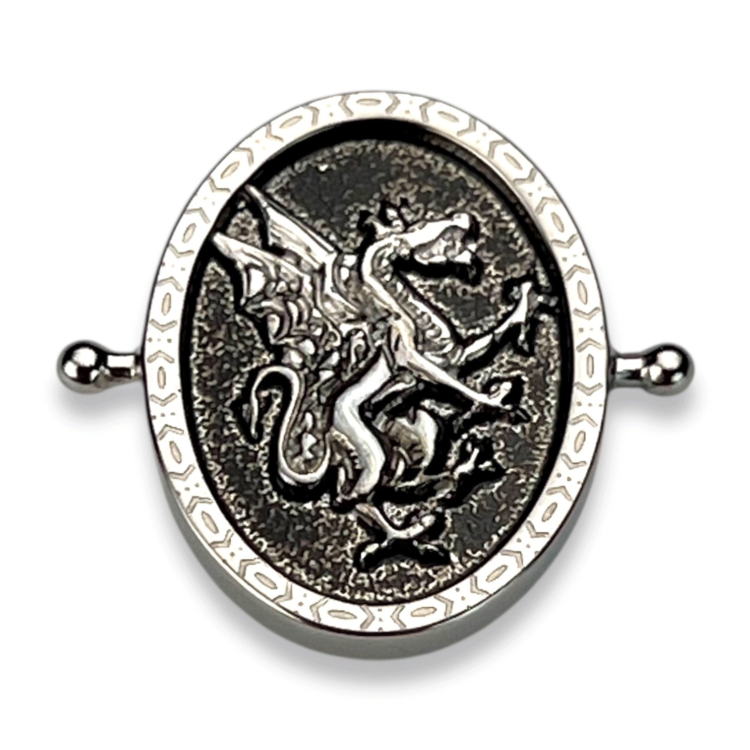 Choose from five designs that are available in Silver or Gold, and showcase detailed mythical iconography framed in CONQUERing’s signature metalwork with an antiqued finish