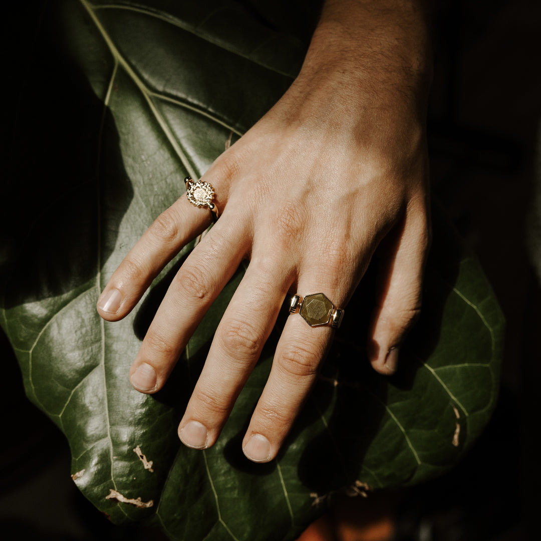 Part of the Parker York Smith Collection, this star-cut hexagon element features a natural crystal precision-cut into a bold geometric shape. The faceted star cut enhances the stone’s depth and brilliance, creating a sleek yet timeless design that reflects Parker’s effortless sense of style. Perfect for elevating everyday looks or adding polish to statement outfits, this piece brings versatile sophistication to your collection. This is the first time we’ve introduced a hexagon shape, hand-selected by Parker to debut as part of his collection.