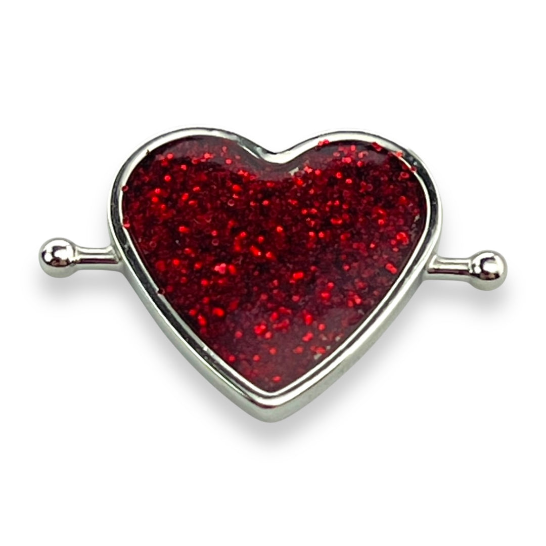 This heart-shaped glitter element is there to remind the person wearing it that they sparkle and brighten the lives of the people they meet.