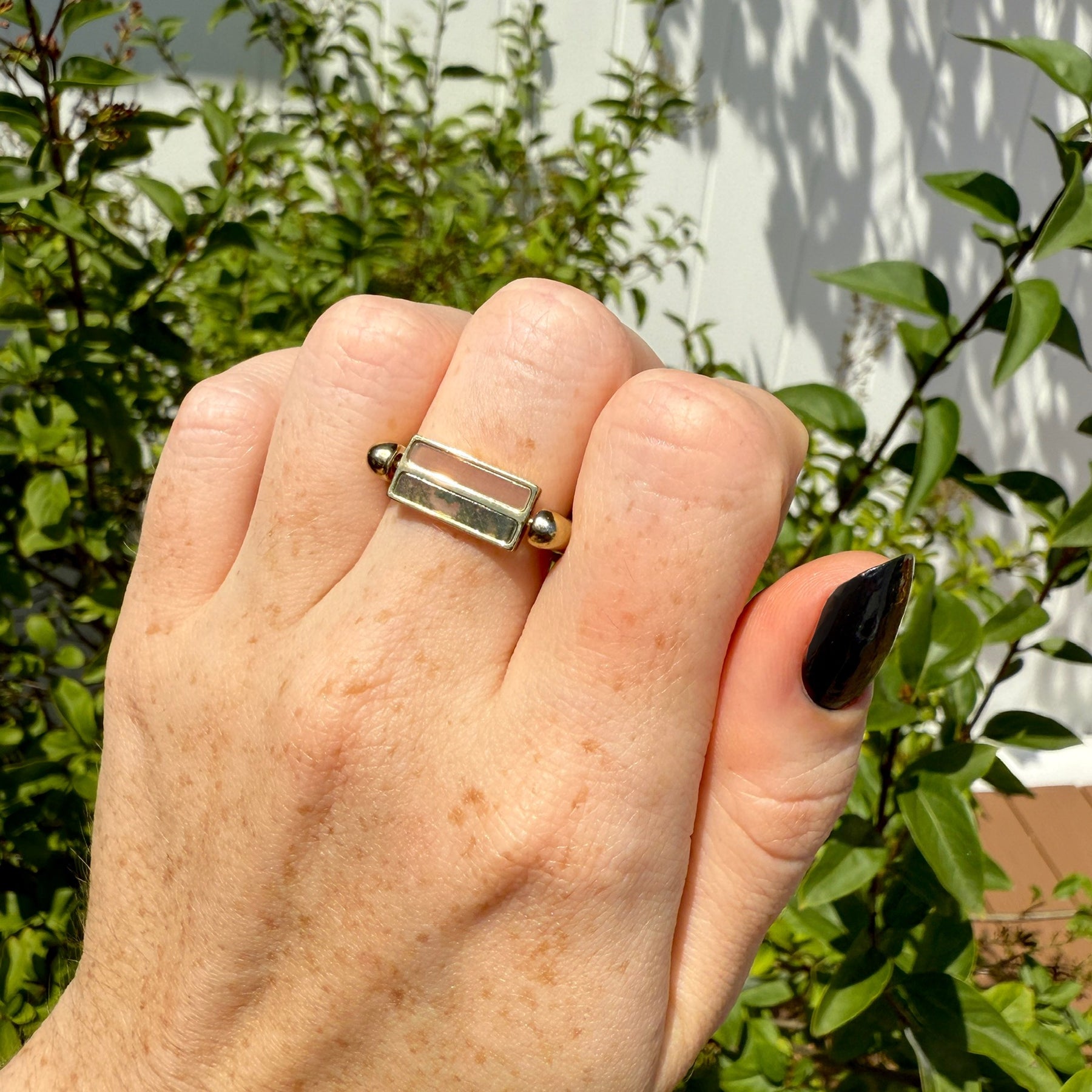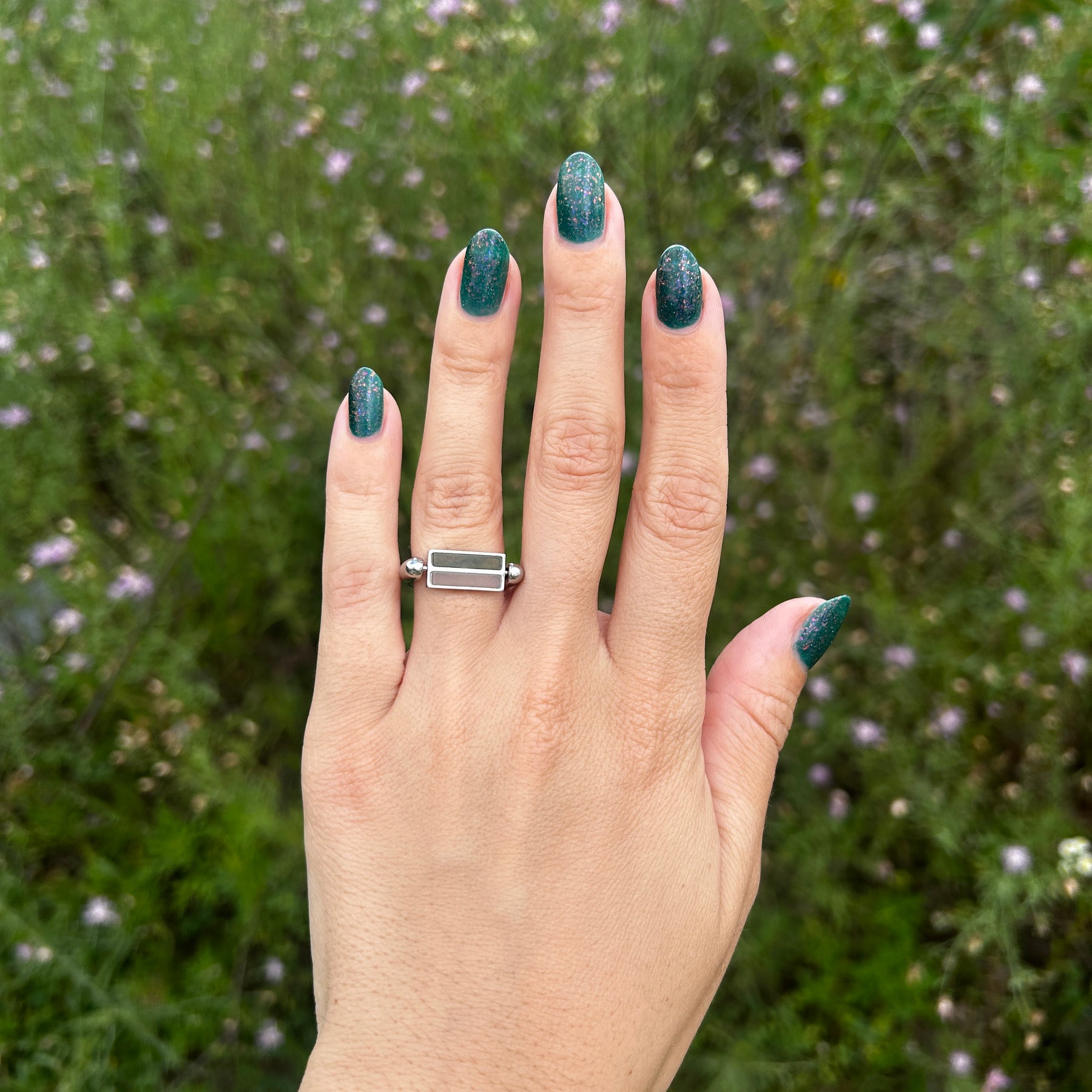 Designed to fit any of our elements, our stainless steel Willow ring band comes in sizes 4-14. Just pop your chosen element on the band by angling one “arm” of the element through the "tracks" on the inside of the ring, and repeat on the other side. Pull the element straight up into the tips of the ring until it clicks into place. (Learn more about how it works here).