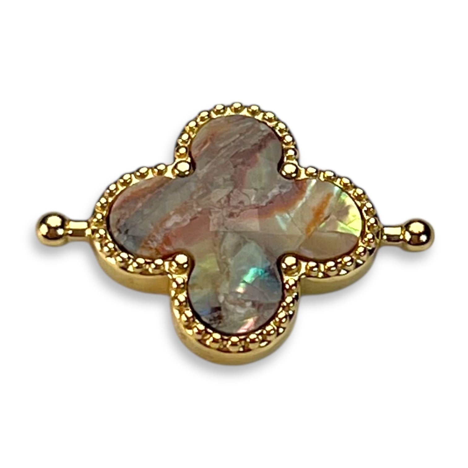 The Quatrefoil Element embodies affordable luxury, offering a timeless symbol of harmony and balance in a refined yet accessible design. Crafted in silver or gold stainless steel, its four-leaf silhouette is framed by intricate millgrain detailing, adding a touch of vintage-inspired elegance. The textured edge enhances the tactile experience, while its sophisticated shape seamlessly blends classic charm with modern style—making it an effortless way to elevate any collection.