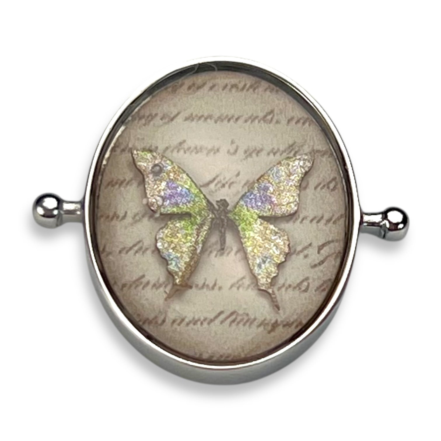The Prism Butterfly Vessel celebrates imagination, creativity, and the many layers of a story well told. Featuring a luminous butterfly layered over a book page, this element reflects transformation through color, light, and perspective—like seeing a familiar story through a new lens.