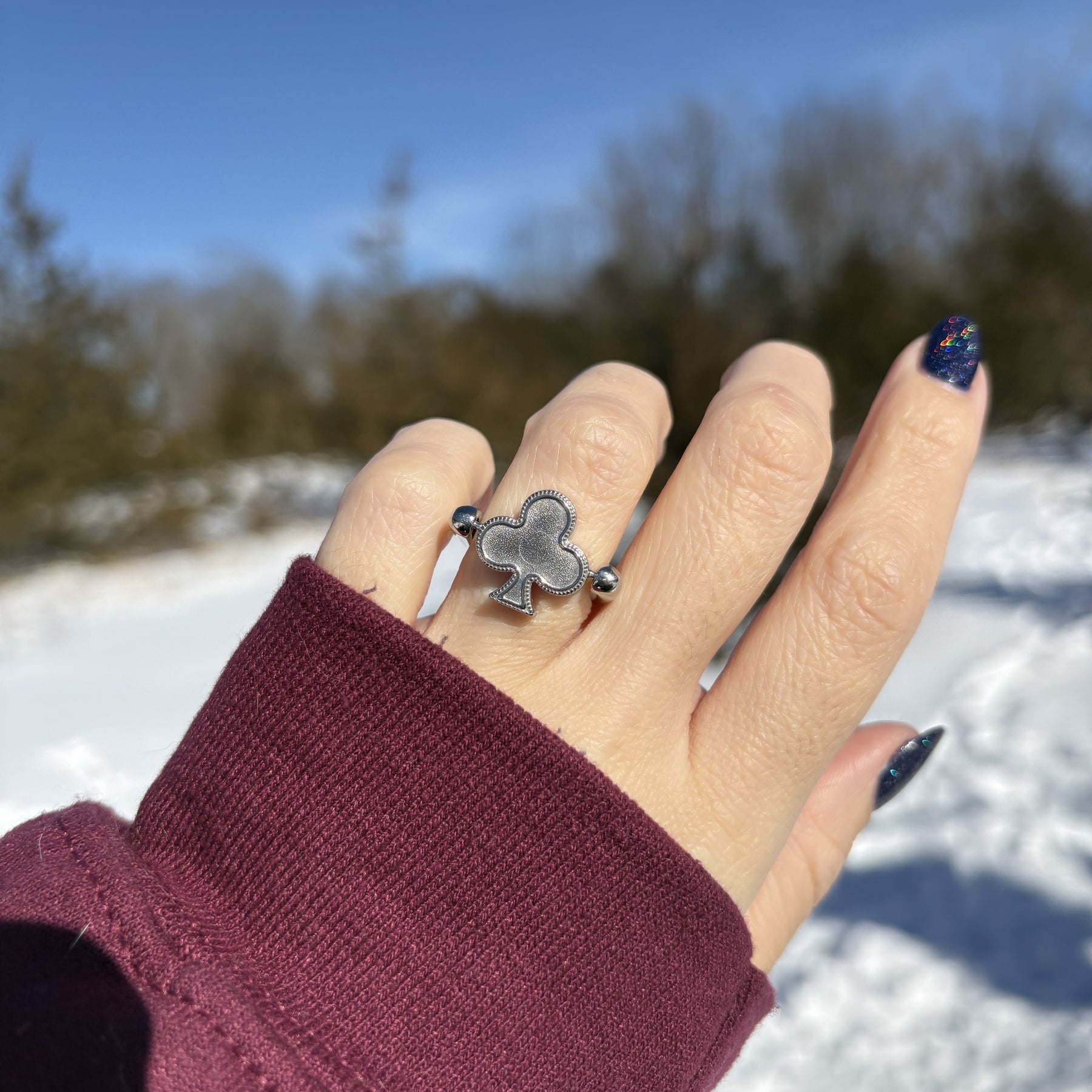 Designed to fit any of our elements, our stainless steel ring band comes in sizes 4-15 and is available in two different colors: silver & gold. Just pop your chosen spinner on the band by angling one “arm” of the disc through the open part of the u-shaped ring, and repeat on the other side. Pull the element straight up into the tips of the ring until it clicks into place. (Learn more about changing your element here).