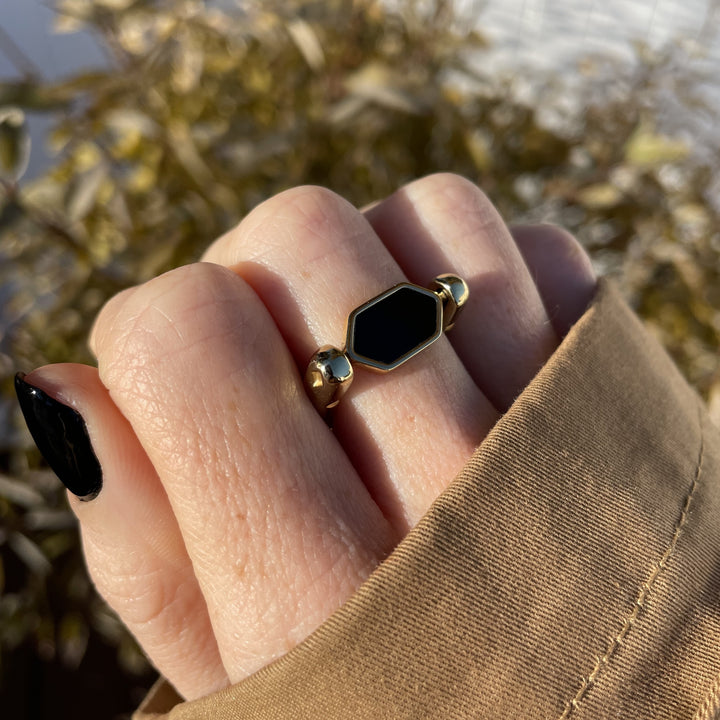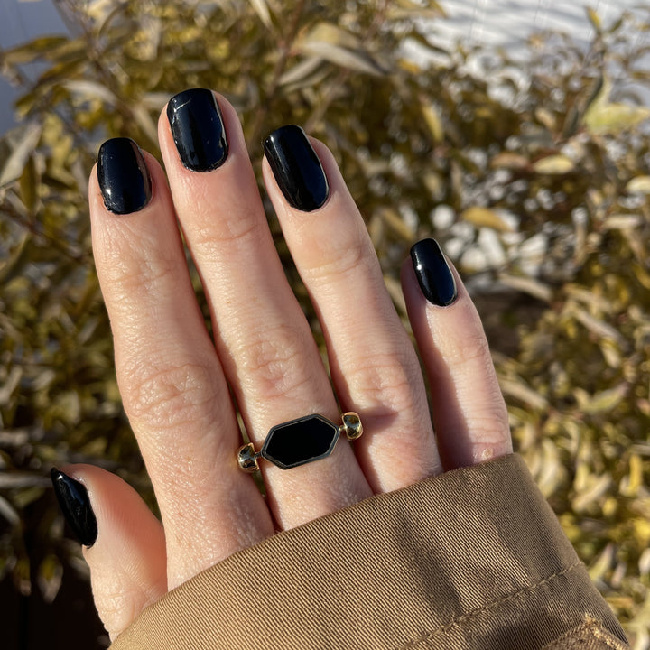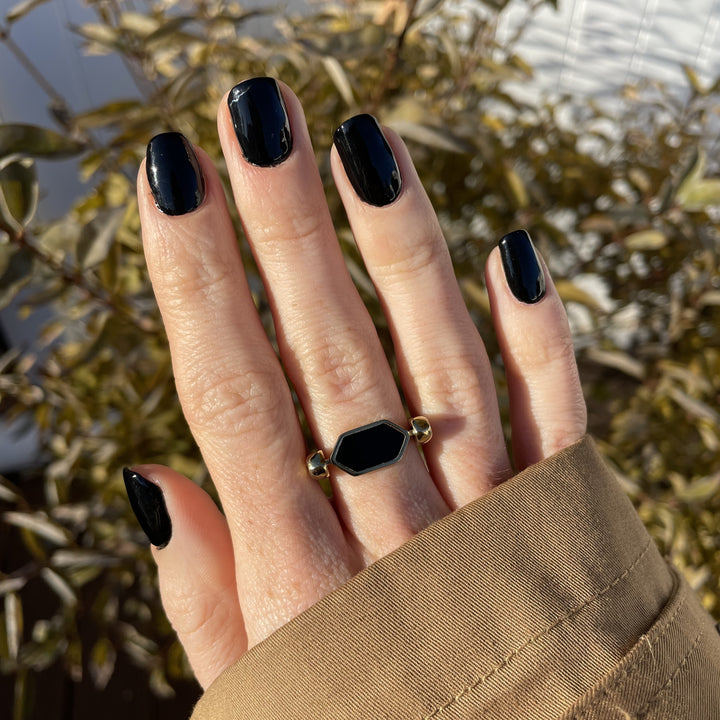 The Hexbar Crystal Element combines two of your favorite elements! It features an Onyx crystal in silver or gold!