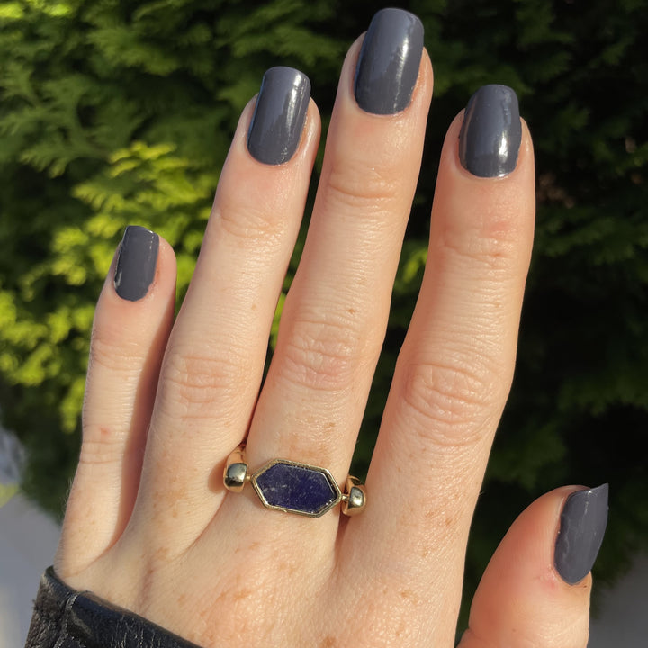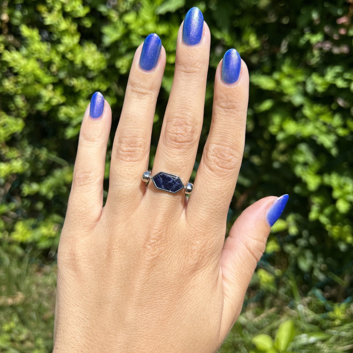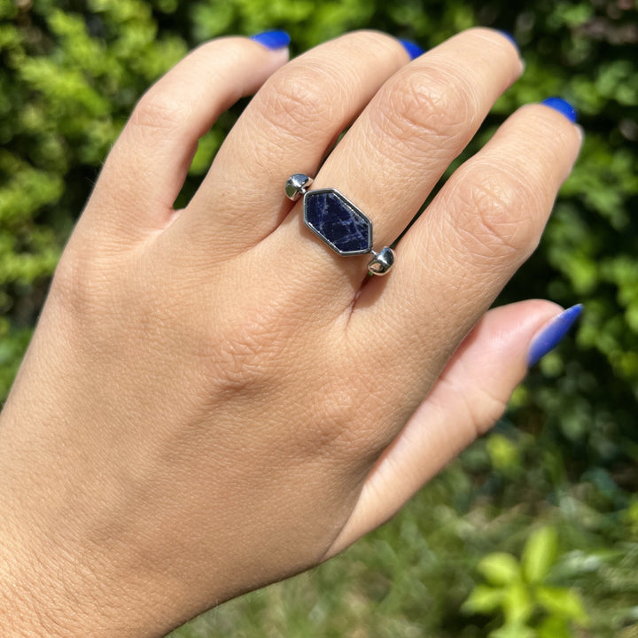 The Hexbar Crystal Element combines two of your favorite elements! It features a Sodalite crystal in silver or gold!