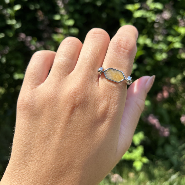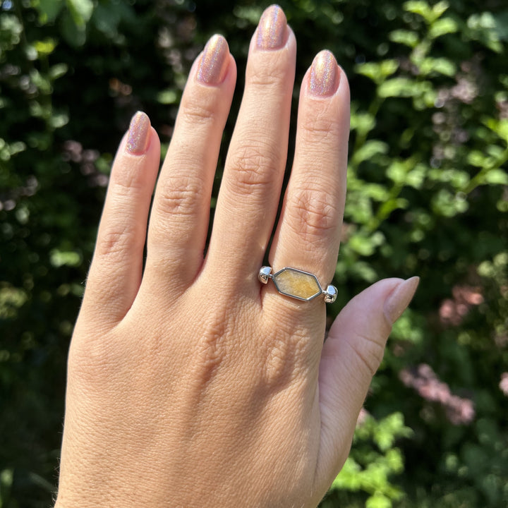 The Hexbar Crystal Element combines two of your favorite elements! It features a Yellow Jasper crystal in silver or gold!