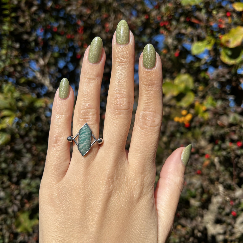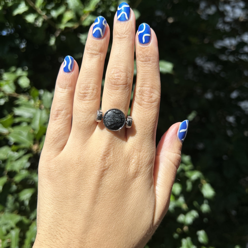 Designed to fit any of our elements, our stainless steel Willow ring band comes in sizes 4-14. Just pop your chosen element on the band by angling one “arm” of the element through the "tracks" on the inside of the ring, and repeat on the other side. Pull the element straight up into the tips of the ring until it clicks into place. (Learn more about how it works here).