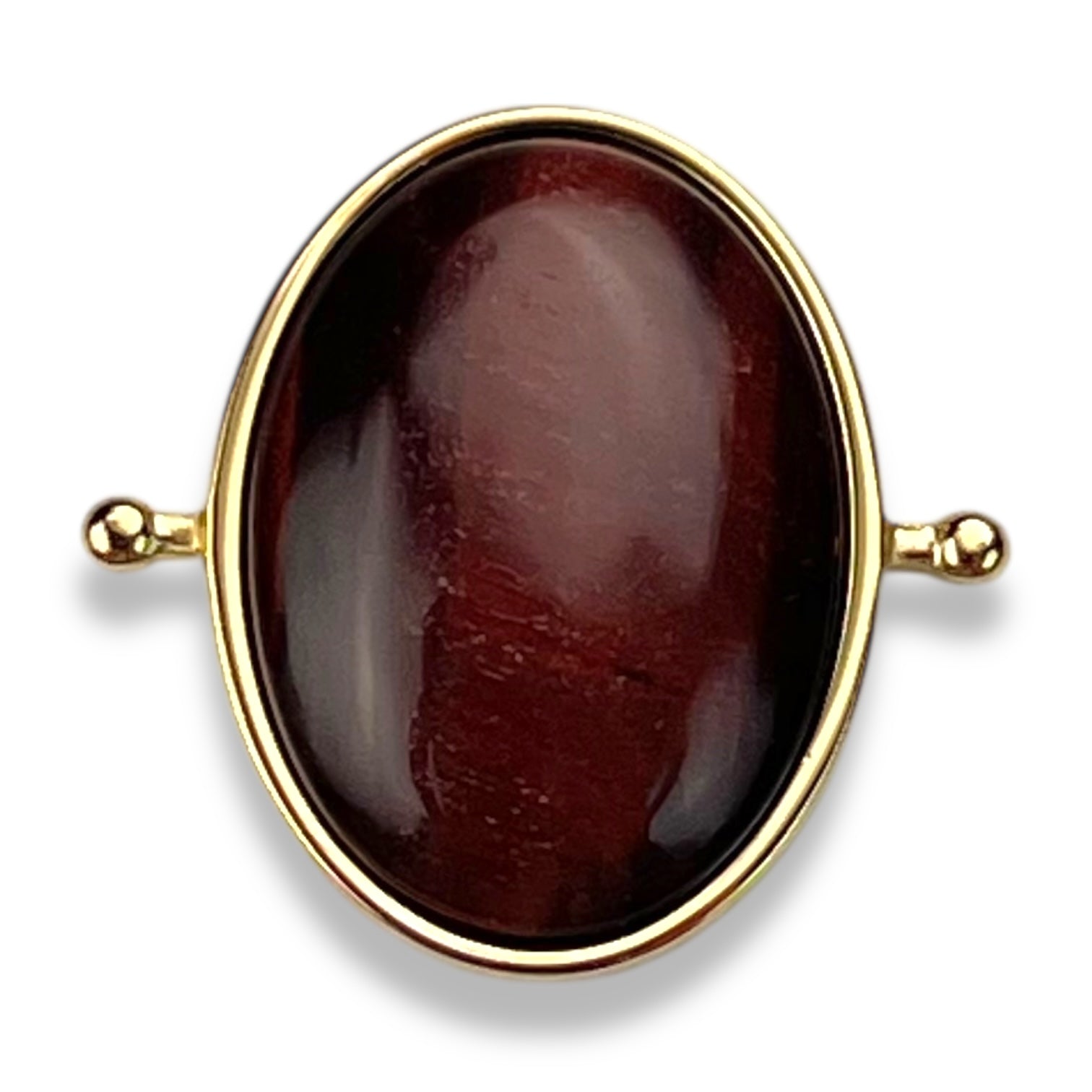 Power meets passion in the Red Tiger’s Eye Oval. With its deep mahogany-red sheen and silky luster, this stone radiates determination and drive. Subtle flashes of light shimmer across the surface, mirroring your inner fire and the courage it takes to move forward.
